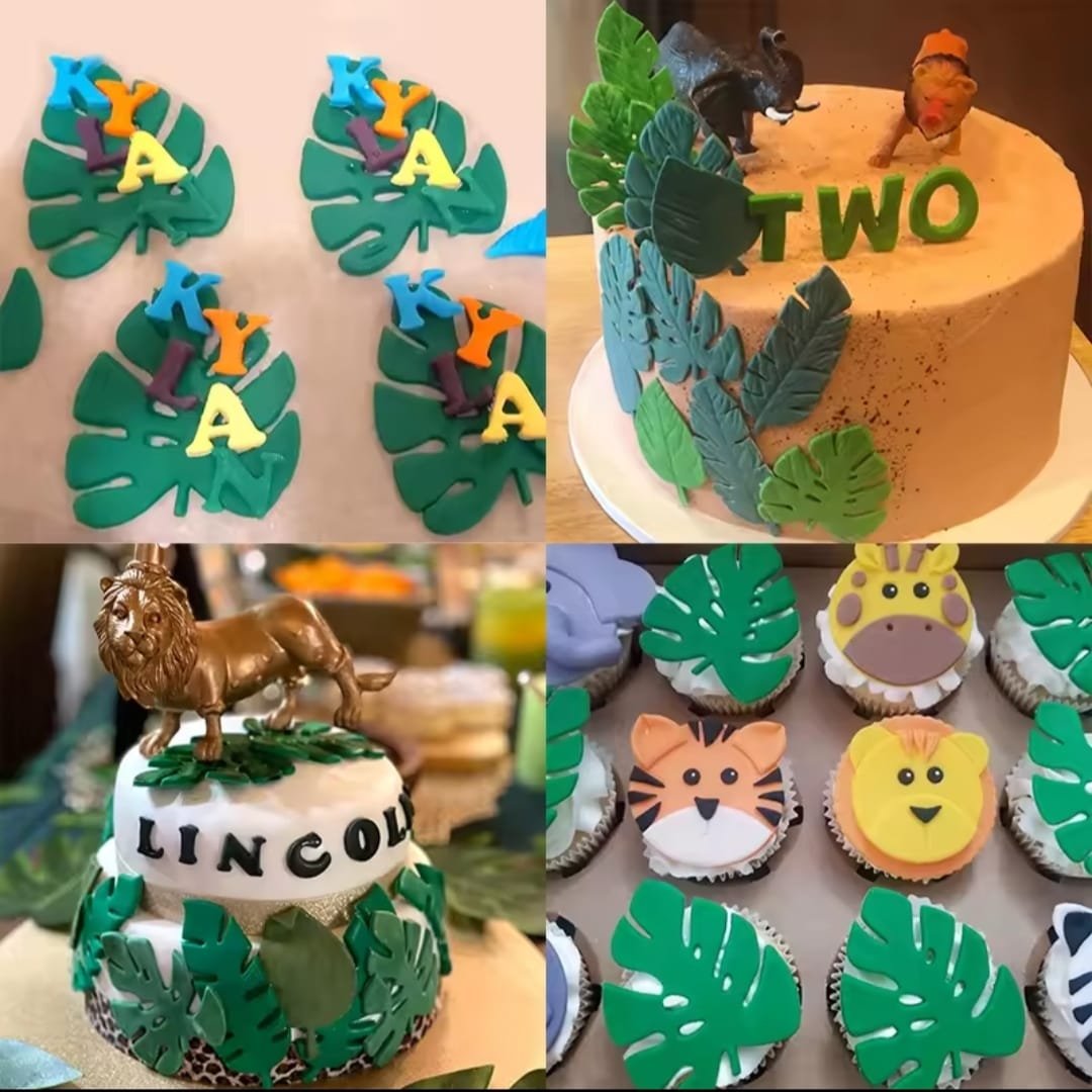 ensemble d'emporte-pièces en forme de feuille de tortue tropicale, moule à gâteau d'anniversaire pour enfants, outils de décoration de gâteaux pour fête d'anniversaire dans la jungle