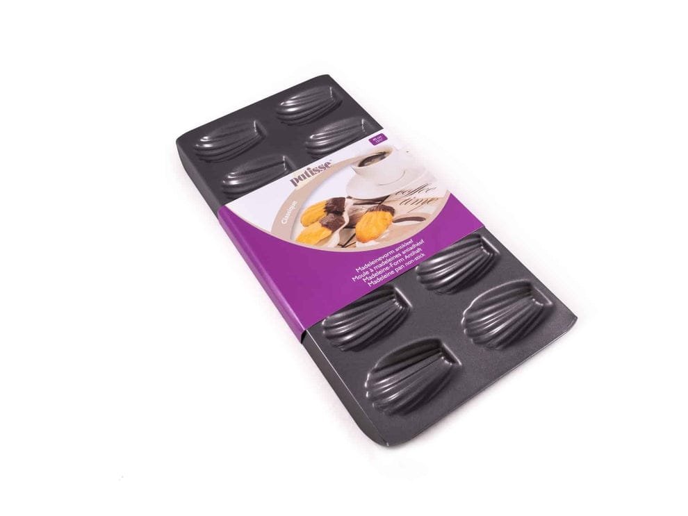 This Madeleine Tin forms part of the Patisse Classique Range. Made from steel and covered with a non-stick coating, this pan can withstand heat up to 215 °C. Create classic little Madeleine cakes with the Madeleine cake tin from Patisse. Each tray has 12 little shell shaped cups to create the perfect little Madeleine cake.