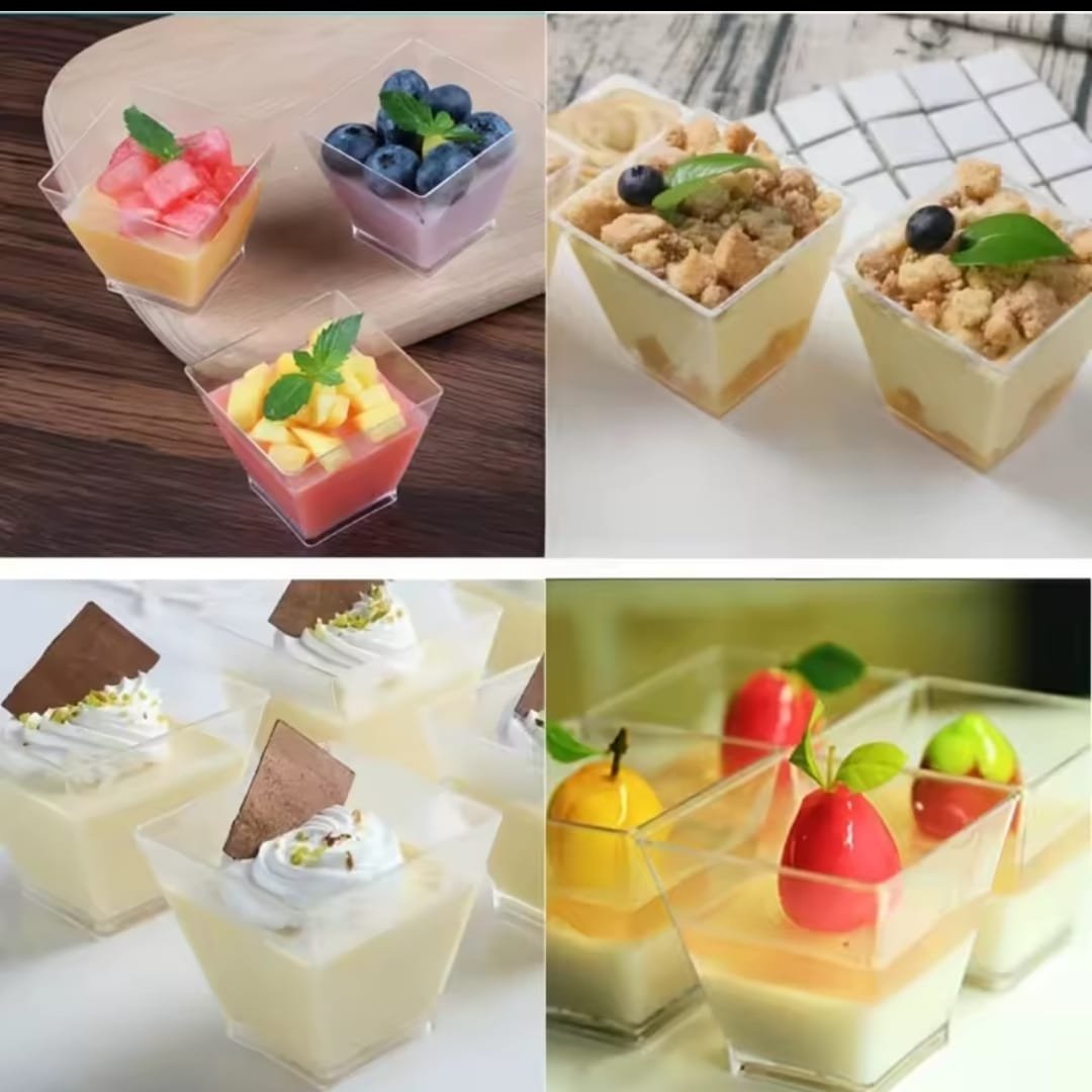 gobelets à dessert jetables en plastique transparent, pour fête, anniversaire, apéritifs, pâtisserie