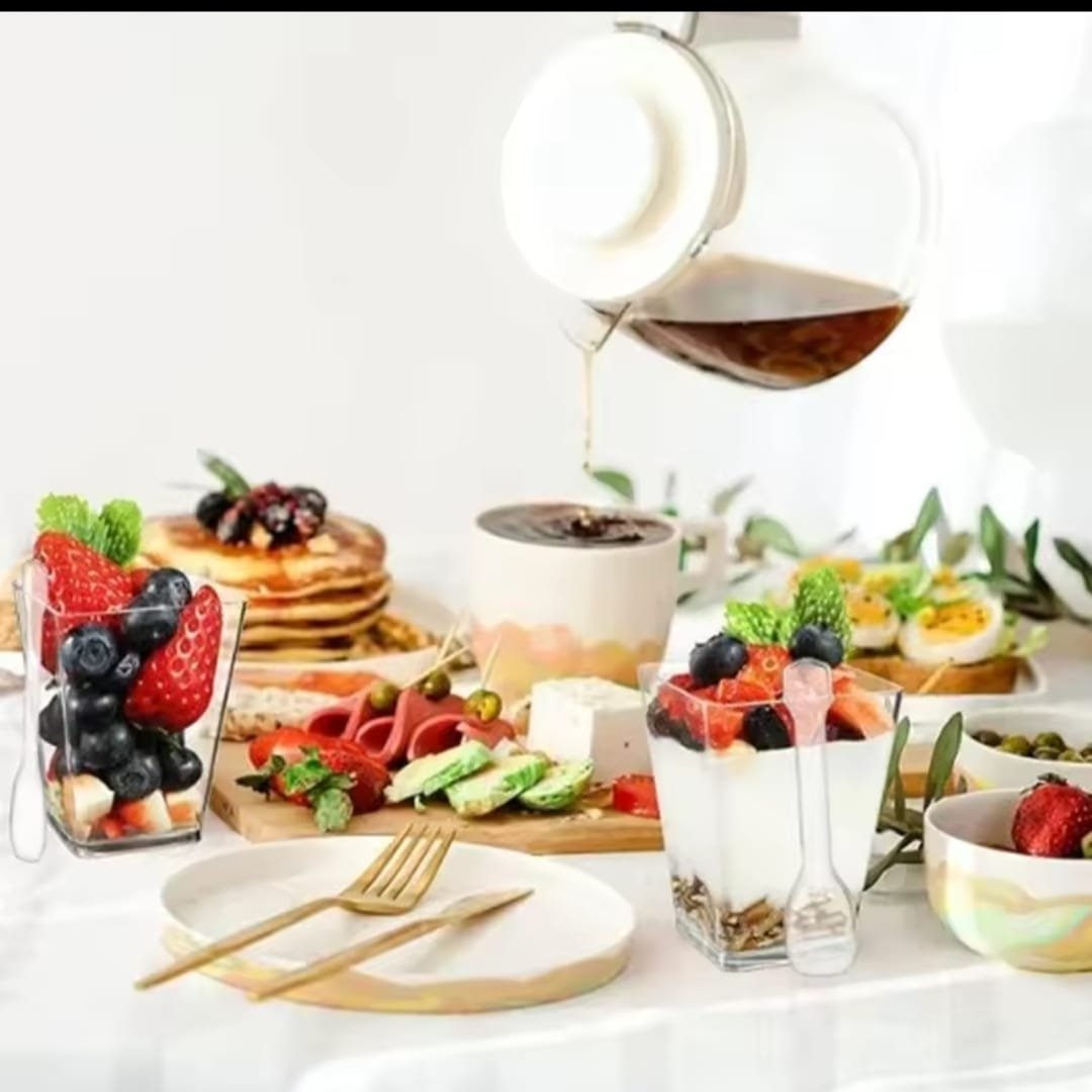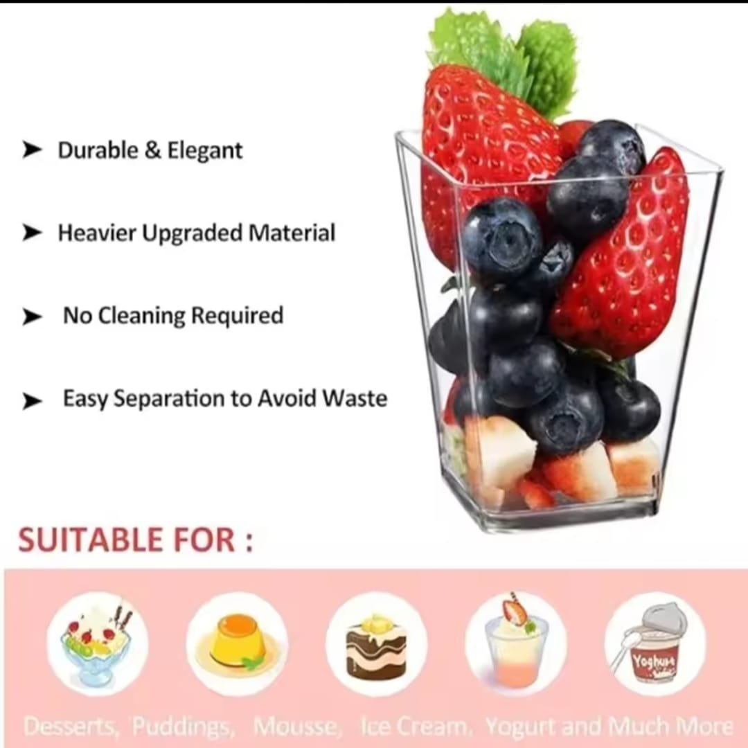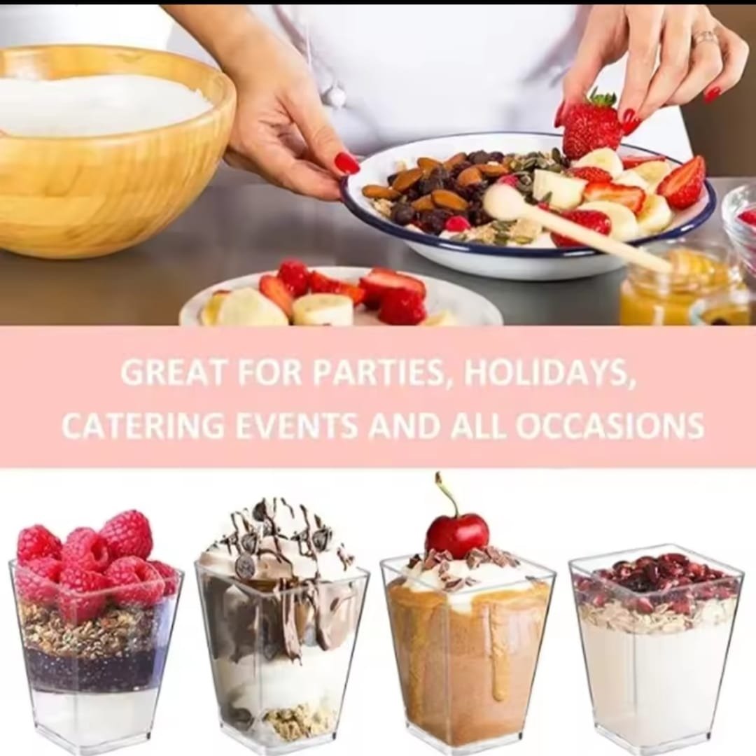 ×mini-gobelets à dessert carrés en plastique transparent de 40/20 oz, pour fêtes, avec petites tasses à dessert en plastique, parfaits pour les desserts, les puddings et les mousses